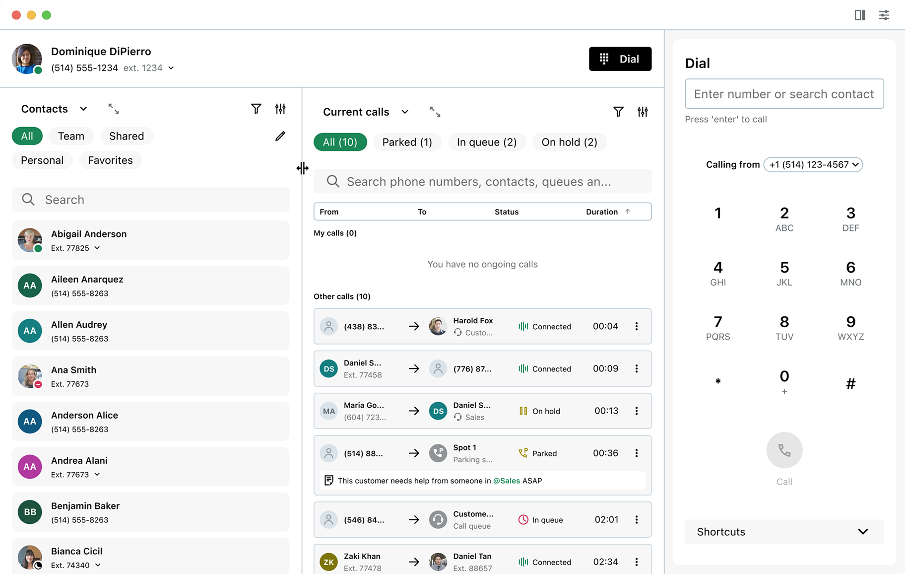 Additional features allow users to tailor the attendant console to their needs and focus on specific tasks. Drag handles let them resize the contacts directory or active calls list, and each section can be expanded for greater focus when needed.